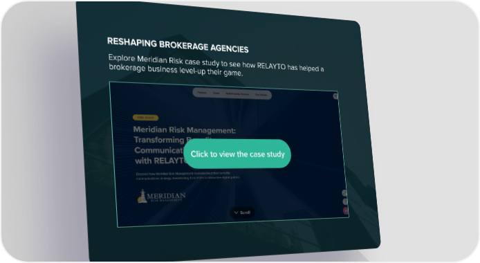 Click to view the case study Explore Meridian Risk case study to see how RELAYTO has helped a brokerage business level-up their game. RESHAPING BROKERAGE AGENCIES