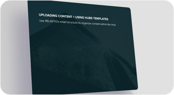 Use RELAYTO’s smart structure to organize content within the Hub. UPLOADING CONTENT + USING HUBS TEMPLATES