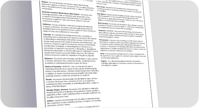 PLEASE SUBMIT THIS FORM WITH YOUR ITEMIZED RECEIPT(S) TO THE FOLLOWING FRAUD NOTICE: For the states of AL, AZ, AR, CA, CO, DE, DC, FL, GA, Maine, Tennessee, Washington: It is a crime to knowingly provide IN, KS, KY, LA, MD, ME, NC, NE, NJ, NM, OK, OR, PA, RI, TN, TX, VA, false, incomplete or misleading information to an insurance company VT, WA and WV, please refer to the following fraud notices: for the purpose of defrauding the company. Penalties may include Alabama: Any person who knowingly presents a false or fraudulent imprisonment, 昀椀nes or a denial of insurance bene昀椀ts. claim for payment of loss or bene昀椀t or who knowingly presents false Nebraska: Any person who, with intent to defraud or knowing that he or information in an application for insurance is guilty of a crime and may be she is facilitating a fraud against an insurer, submits an application or 昀椀les subject to restitution, 昀椀nes or con昀椀nement in prison, or any combination a claim containing false, incomplete or misleading information is guilty of thereof. insurance fraud. Arizona: For your protection, Arizona law requires the following New Jersey: Any person who knowingly 昀椀les a statement of claim statement to appear on this form: Any person who knowingly presents a containing any false or misleading information is subject to criminal and false or fraudulent claim for payment of a loss is subject to criminal and civil penalties. civil penalties. New Mexico: Any person who knowingly presents a false or fraudulent Arkansas, Louisiana, Rhode Island, West Virginia: Any person who claim for payment of a loss or bene昀椀t or knowingly presents false knowingly presents a false or fraudulent claim for payment of loss information in an application for insurance is guilty of a crime and may be or bene昀椀t or knowingly presents false information in an application subject to civil 昀椀nes and criminal penalties. for insurance is guilty of a crime and may be subject to 昀椀nes and North Carolina: Any person with the intent to injure, defraud, or deceive con昀椀nement in prison. an insurer or insurance claimant is guilty of a crime (Class H felony) which California: For your protection, California law requires the following may subject the person to criminal and civil penalties. to appear on this form: Any person who knowingly presents false or Oklahoma: WARNING: Any person who knowingly, and with intent to fraudulent claim for the payment of a loss is guilty of a crime and may be injure, defraud or deceive any insurer, makes any claim for the proceeds subject to 昀椀nes and con昀椀nement in state prison. of an insurance policy containing any false, incomplete or misleading Colorado: It is unlawful to knowingly provide false, incomplete, or information is guilty of a felony. misleading facts or information to an insurance company for the purpose Pennsylvania: Any person who knowingly and with intent to defraud of defrauding or attempting to defraud the company. Penalties may any insurance company or other person 昀椀les an application for insurance include imprisonment, 昀椀nes, denial of insurance and civil damages. Any or statement of claim containing any materially false information or insurance company or agent of an insurance company who knowingly conceals, for the purpose of misleading, information concerning any fact provides false, incomplete, or misleading facts or information to a material thereto commits a fraudulent insurance act, which is a crime and policyholder or claimant for the purpose of defrauding or attempting to subjects such person to criminal and civil penalties. defraud the policyholder or claimant with regard to a settlement or award payable from insurance proceeds shall be reported to the Colorado Texas: Any person who knowingly presents a false or fraudulent claim Division of Insurance within the Department of Regulatory Agencies. for payment of a loss is guilty of a crime and may be subject to 昀椀nes and Delaware: Any person who knowingly, and with intent to injure, defraud con昀椀nement in state prison. or deceive any insurer, 昀椀les a statement of claim containing any false, Virginia: It is a crime to knowingly provide false, incomplete or incomplete or misleading information is guilty of a felony. misleading information to an insurance company for the purpose of District of Columbia: WARNING: It is a crime to provide false or defrauding the company. misleading information to an insurer for the purpose of defrauding the insurer or any other person. Penalties include imprisonment and/or 昀椀nes. In addition, an insurer may deny insurance bene昀椀ts if false information materially related to a claim was provided by the applicant. Florida: Any person who knowingly and with intent to injure, defraud, or deceive any insurer 昀椀les a statement of claim or an application containing any false, incomplete, or misleading information is guilty of a felony of the third degree. Georgia, Oregon, Vermont: Any person who with intent to defraud or knowing that he/she is facilitating a fraud against an insurer, submits an application or 昀椀les a claim containing a false or deceptive statement may be guilty of insurance fraud. Indiana: A person who knowingly and with intent to defraud an insurer 昀椀les a statement of claim containing any false, incomplete, or misleading information commits a felony. Kansas: Any person who with intent to defraud or knowing that he or she is facilitating a fraud against an insurer, submits an application or 昀椀les a claim containing a false or deceptive statement may be guilty of insurance fraud as determined by a court of law. Kentucky: Any person who knowingly and with intent to defraud any insurance company or other person 昀椀les a statement of claim containing any materially false information or conceals, for the purpose of misleading, information concerning any fact material thereto commits a fraudulent insura