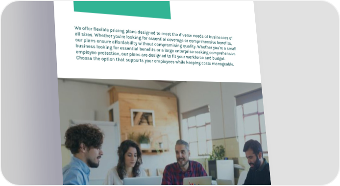 Pricing Tables We offer flexible pricing plans designed to meet the diverse needs of businesses of all sizes. Whether you're looking for essential coverage or comprehensive benefits, our plans ensure affordability without compromising quality. Whether you're a small business looking for essential benefits or a large enterprise seeking comprehensive employee protection, our plans are designed to fit your workforce and budget. Choose the option that supports your employees while keeping costs manageable. 8