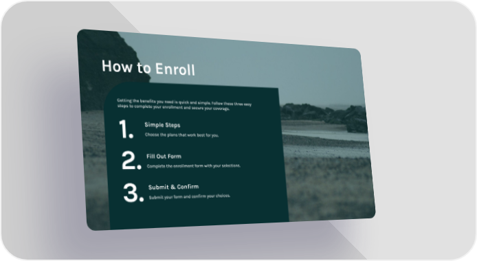 How to Enroll Getting the benefits you need is quick and simple. Follow these three easy steps to complete your enrollment and secure your coverage. Simple Steps 1. 2. 3. Choose the plans that work best for you. Fill Out Form Complete the enrollment form with your selections. Submit & Confirm Submit your form and confirm your choices.