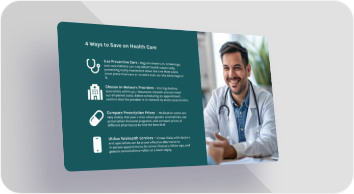 4 Ways to Save on Health Care Use Preventive Care – Regular check-ups, screenings, and vaccinations can help detect health issues early, preventing costly treatments down the line. Most plans cover preventive care at no extra cost, so take advantage of it. Choose In-Network Providers – Visiting doctors, specialists within your insurance network ensures lower out-of-pocket costs. Before scheduling an appointment, confirm that the provider is in-network to avoid surprise bills. Compare Prescription Prices – Medication costs can vary widely. Ask your doctor about generic alternatives, use prescription discount programs, and compare prices at different pharmacies to find the best deal. Utilize Telehealth Services – Virtual visits with doctors and specialists can be a cost-effective alternative to in-person appointments for minor illnesses, follow-ups, and general consultations—often at a lower copay.