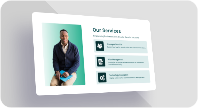Our Services Empowering Businesses with Smarter Benefits Solutions Employee Benefits Customized health, dental, vision, and life insurance plans. Risk Management Strategies to minimize financial exposure and ensure business continuity. Technology Integration Digital solutions for seamless benefits management.